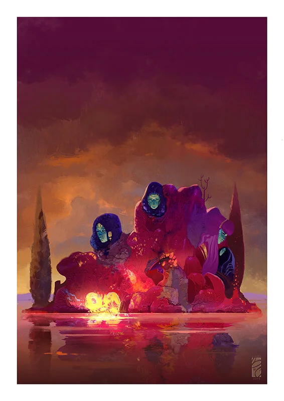 “Ho scelto il formato poster A2 per le mie illustrazioni per una precisa ragione estetica. Le mie composizioni e colori rendono al meglio su un grande formato che permette di apprezzarne i piccoli dettagli e le textures. Questa dimensione permette inoltre all’osservatore un’esperienza molto più immersiva. Infine, ma non meno importante, amo inserire misteriose ambiguità visive nelle mie immagini, che si possono cogliere solo su un formato sufficientemente grande.” -B.C.